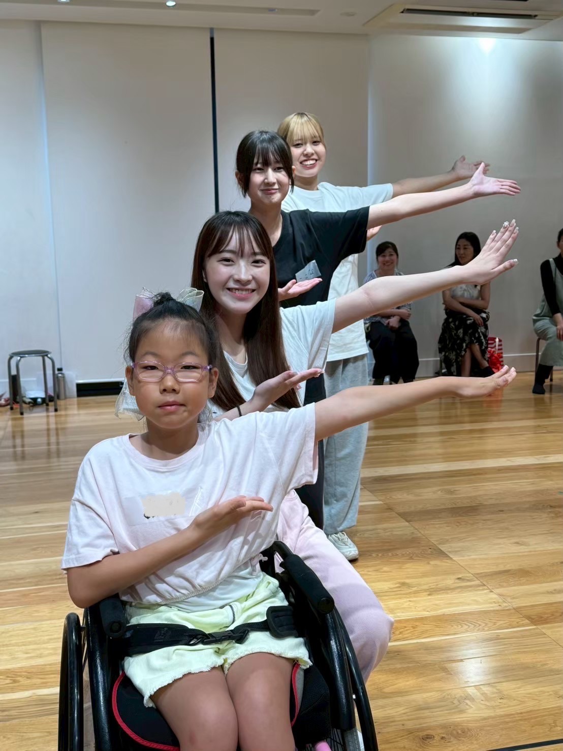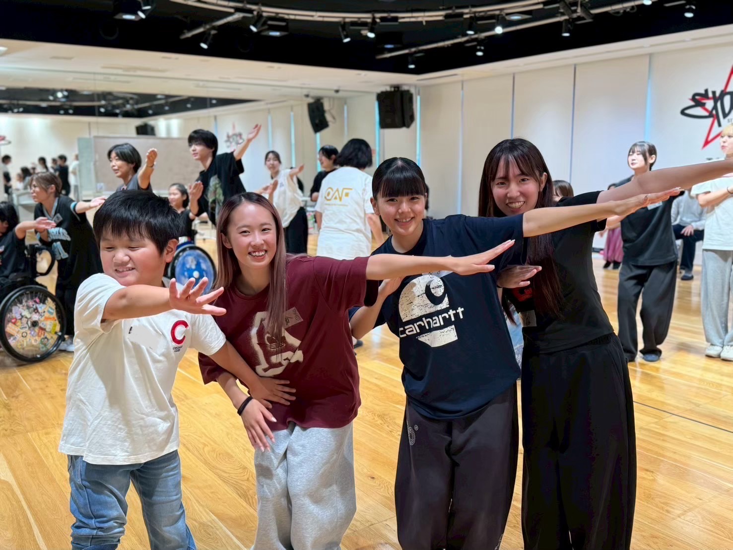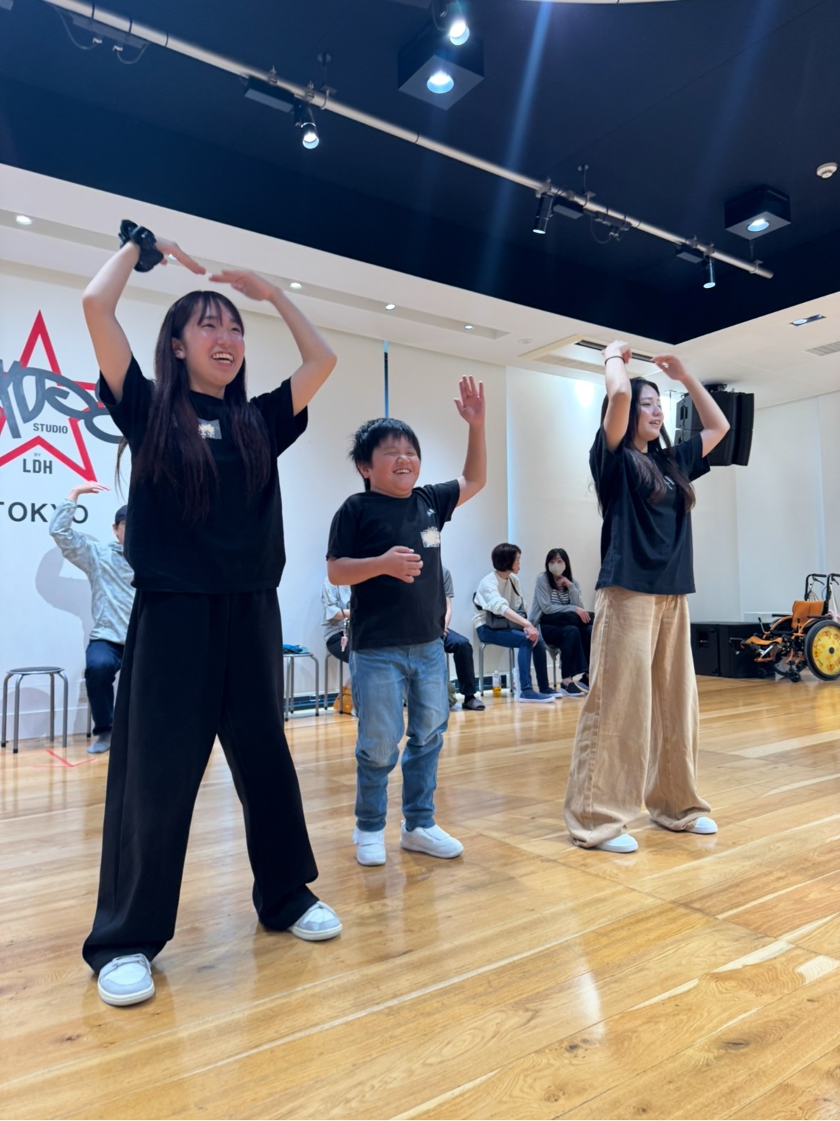 今回のプログラムでは、2回の練習を通して、参加した子どもたちは生徒の皆さんと一緒に振り付けを覚えながら、少しずつ自信を深めていきました。自己紹介やゲームを通してあっという間に仲良くなり、音楽に合わせて体を動かすたびに笑顔が増えていくのが印象的でした。