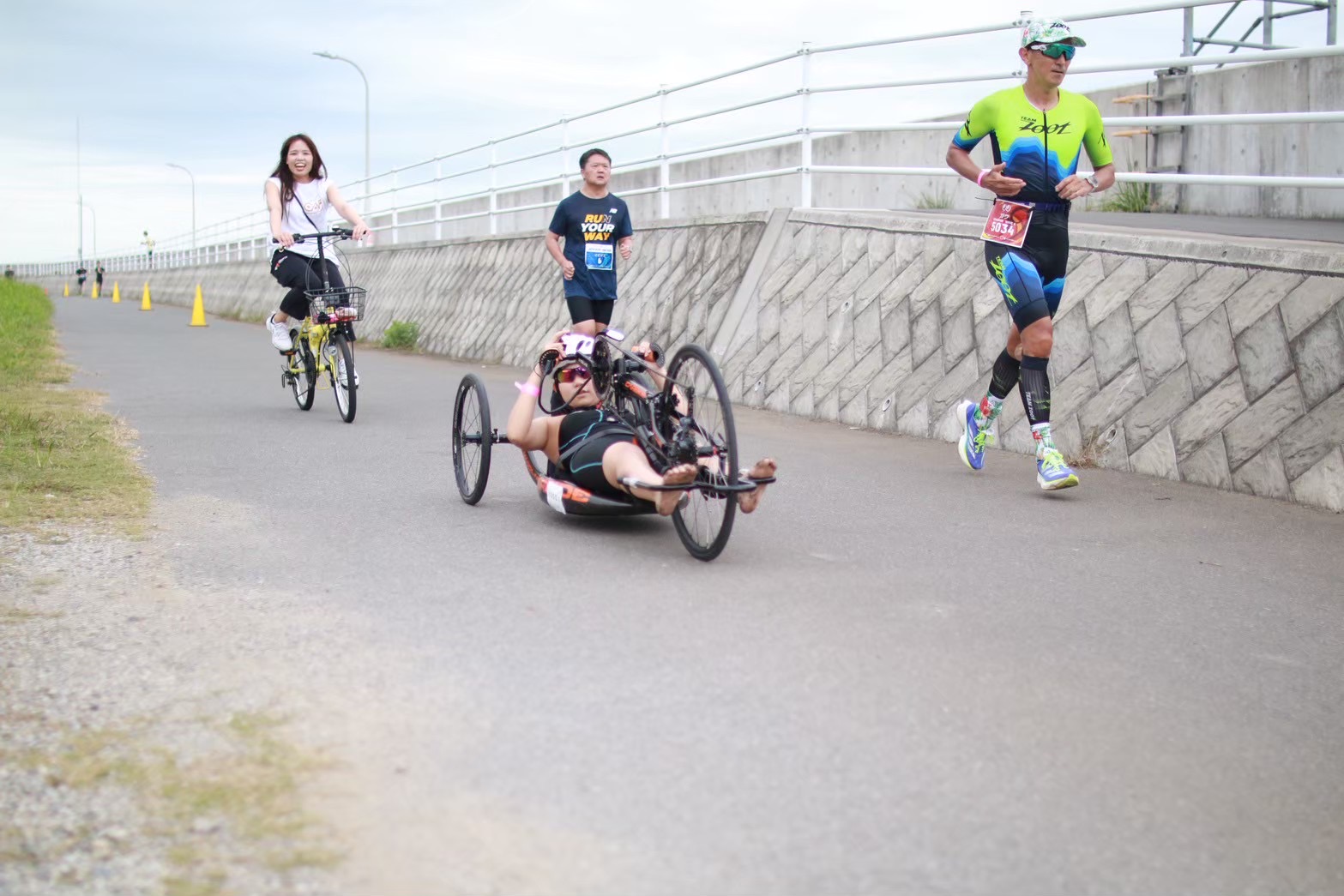 スイム25m弱(海)、バイク3km、ラン1.1kmと、程よい距離で完走を目指せる設定。 - 一直線で走れる気持ちよさ